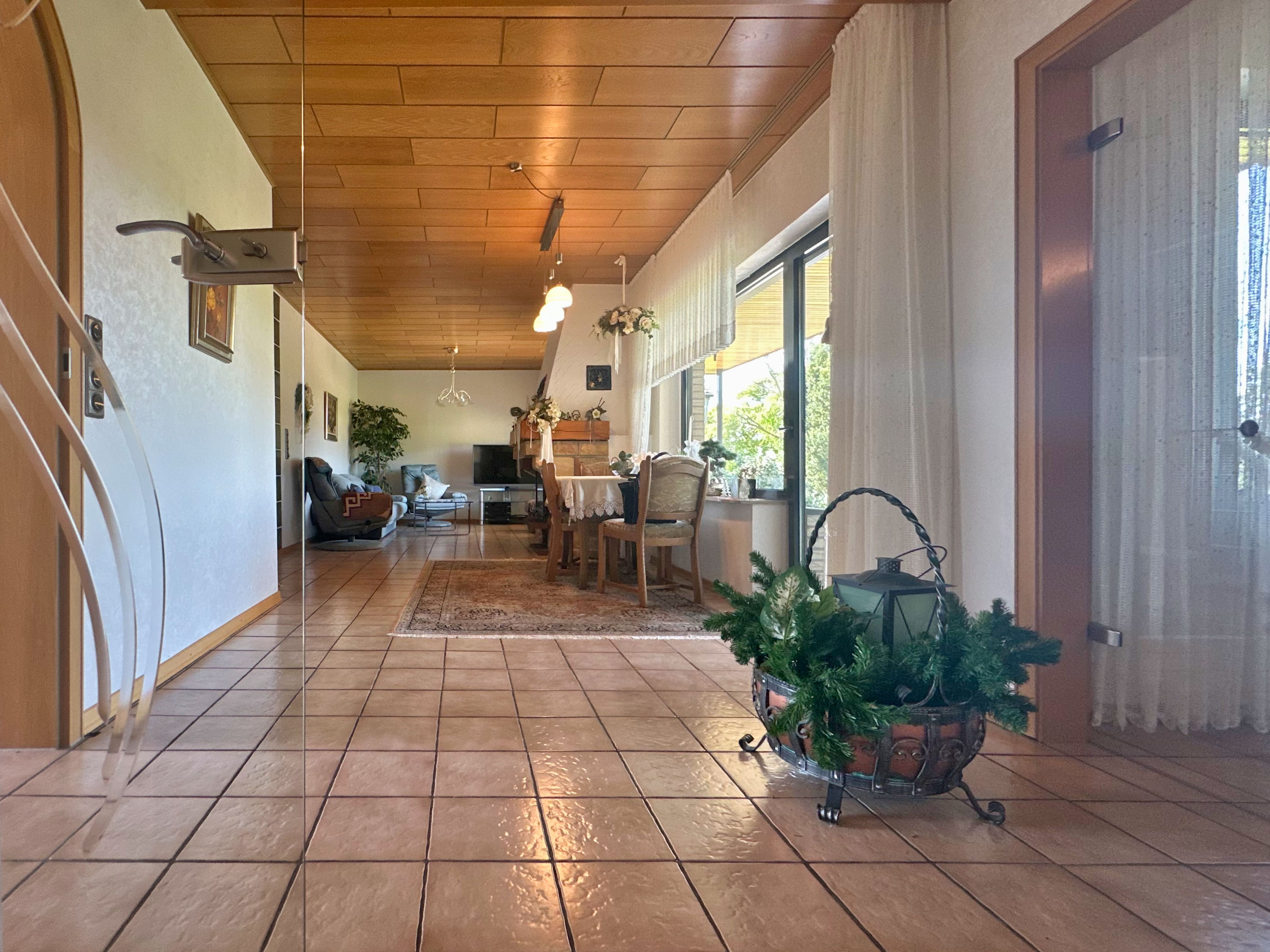 Die Essdiele verbindet Küche und Wohnbereich harmonisch miteinander und öffnet sich direkt zur Terrasse. Dieser fließende Übergang sorgt für eine freundliche, lichtdurchflutete Stimmung und macht den Raum sowohl für den Alltag als auch für gesellige Runden mit Gästen ideal nutzbar.
